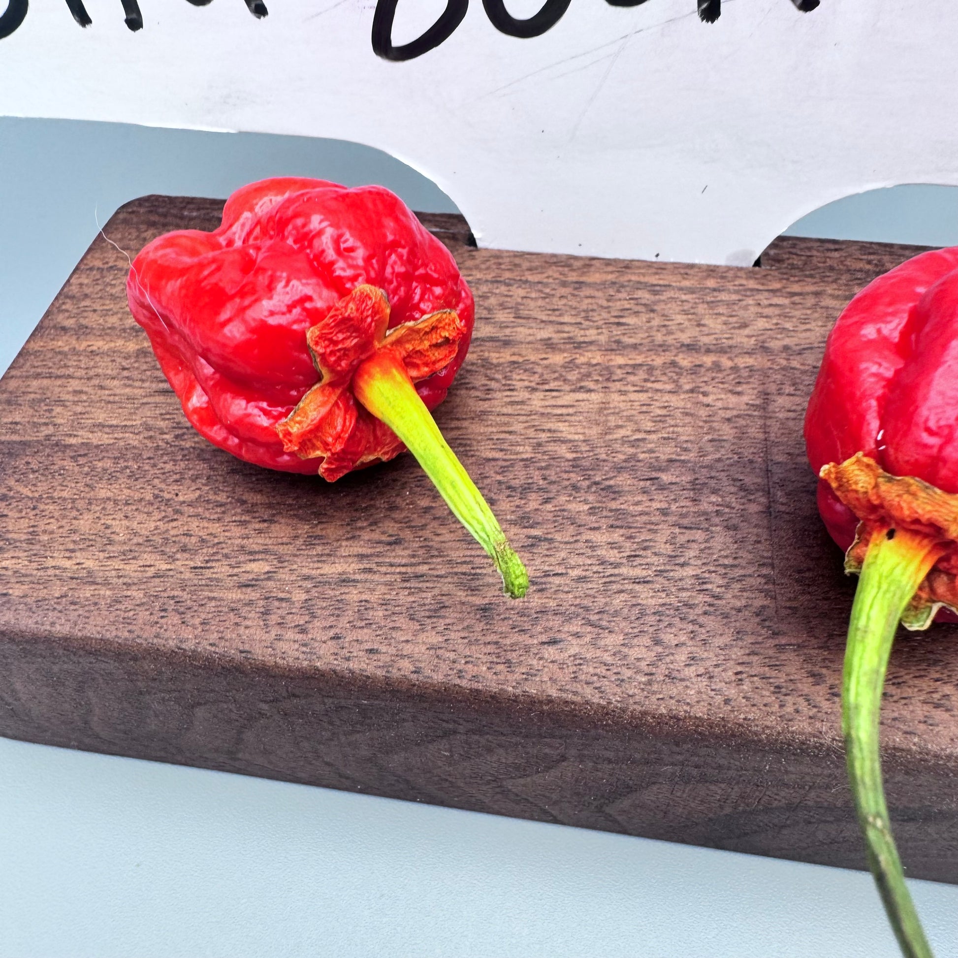 One of the most striking and savage superhot peppers in the world. This rare variety gets its name from the brilliant red color that “bleeds” up the stem, giving it the signature bubblegum effect, and its wickedly twisted, bumpy pods signal the extreme heat that lies within. Packing a brutal 850,00 to 1,000,000 Scoville Heat Units (SHU), it delivers a fruity, floral flavor up front before unleashing a relentless, mouth-numbing burn that lingers long. Perfect for crafting intense hot sauces, powders, or daring culinary experiments, this pepper is as ornamental as it is lethal.